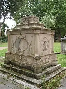 There are also the graves of 18th century novelist Harriet Thomson (c. 1719–1787) made of coade stone,[5][9] the grave of William Leader (1767–1828), whose son John Temple Leader gave land for Leader's Gardens park elsewhere in Putney, and the grave of the Rev. Richard St. Aubyn (1807–1849) who was son of Sir John St Aubyn.[3]
