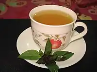A cup of Kahwah made with tulsi in place of the typical green tea