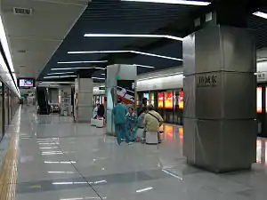 Qiaocheng East station (simplified Chinese: 侨城东站; traditional Chinese: 僑城東站; Jyutping: Kiu4 Sing4 Dung1 Zaam6; lit. 'Overseas Chinese Town East station'), formerly Qiaochengdong station, is a station on Line 1 of the Shenzhen Metro. It opened on 28 December 2004. It is located underground at Shennan Dadao (Chinese: 深南大道), west of Qiaochengdong Lu (simplified Chinese: 侨城东路; traditional Chinese: 僑城東路) and east of Xiaoshahe Lu (Chinese: 小沙河路), in Futian District, Shenzhen, China. It is near the east end of Splendid China Folk Village (simplified Chinese: 锦绣中华; traditional Chinese: 錦綉中華) and Overseas Chinese Town (simplified Chinese: 华侨城; traditional Chinese: 華僑城),[1] hence its name.