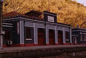 Qinglongqiao railway station (Chinese: 青龙桥站; pinyin: Qīnglóngqiáo Zhàn) (also known as Ching-lung-chiao railway station) is a historic station of Jingbao Railway located in Badaling Town, Yanqing District, Beijing. It was built in 1908, and includes the famous zigzag railway designed by the Chinese railroad engineer Zhan Tianyou (Jeme Tien-Yow).[1] The station also contains the tomb of Zhan Tianyou and a statue of his,[2] along with milestones in Suzhou numerals.