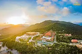 Quảng Ninh is a mountainous and coastal province, with more than 80 per cent of its area being made up of mountains and hills. The 2,000 some islands are also considered mountains. The mountainous zone can be divided into two parts: the eastern mountainous region extending from Tiên Yên through Bình Liêu, Hải Hà, Đầm Hà and Móng Cái; and the western zone ranging from Tiên Yên through Ba Chẽ and Hoành Bồ, north of Uông Bí Town. The former is a continuation of the Thâp Van Đai Son range in China. There are two main chains: Quảng Nam Châu 1,507 m and Cao Xiêm 1,330 m. The western zone features smooth and curved mountains called Đông Triều with Yên Tu Mount 1,068 m in Uông Bí region and Am Váp Mount 1,094 m in Hoành Bồ District.[6][7]
