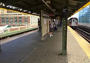 The Queensboro Plaza station (originally named Queensboro Bridge Plaza station or simply Bridge Plaza station) is an elevated New York City Subway station at Queens Plaza (originally called Queensboro Bridge Plaza or simply Bridge Plaza) in the Long Island City neighborhood of Queens.[5][6] It is near the east end of the Queensboro Bridge, with Queens Boulevard running east from the plaza. The station is served by the 7 and N trains at all times, the W train on weekdays, and the <7> train rush hours in the peak direction.