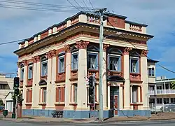 In 1872, the recently formed QNB acquired the land.[5] However, the bank did not operate from Southerden's former store but initially occupied a small timber building to the rear and then a purpose-built bank (no longer extant) facing Richmond Street. The bank leased the former store on the corner of Richmond and Lennox Streets to Stoward, Bryant and Co. and subsequently a number of other commercial operations before finally moving into the building in 1903.[1][6]