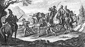 Kuruc preparing to attack traveling coach and riders, c. 1705