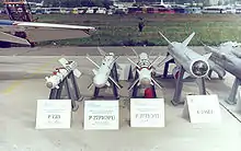 The R-27 is manufactured in infrared-homing (R-27T, R-27ET),[9] semi-active-radar-homing (R-27R, R-27ER),[10] and active-radar-homing (R-27EA)[11] versions. R-27 family missiles are produced by both Russian and Ukrainian manufacturers. The R-27 missile is carried by the Mikoyan MiG-29 and Sukhoi Su-27 family fighters. The R-27 missile is also license-produced in China, though the production license was bought from Ukraine instead of Russia.