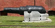![]() Restored Mark I, RML 9-inch 12-ton gun being fired at Simon's Town in 2014, with replica ammunition in the foreground | |