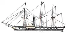 The builder's registration on 27 April 1822 stated the ship had a tonnage of 173 tons, was 130 feet (40 m) long with a beam of 20 feet 1 inch (6.12 m) and a draught of 13 feet 8 inches (4.17 m).[2] St Patrick was powered by a double engine of 55 horsepower (41 kW) made by Fawcett, Preston & Co. of Liverpool.[3]