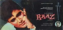 Raaz (lit. 'Secret') is a 1967 Hindi romantic thriller movie directed by Ravindra Dave. Produced by G. P. Sippy for Sippy Films, the story was written by C. J. Pavri.[1] The film stars Rajesh Khanna, Babita, I. S. Johar and Asit Sen. The film's music is by Kalyanji Anandji. Rajesh Khanna and Babita are introduced in this film. Khanna's performance in this film was critically appreciated.[2]