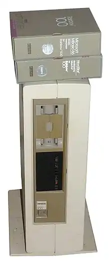 The Rainbow 100 is a microcomputer introduced by Digital Equipment Corporation (DEC) in 1982. This desktop unit had a monitor similar to the VT220 and a dual-CPU box with both 4 MHz Zilog Z80 and 4.81 MHz Intel 8088 CPUs. The Rainbow 100 was a triple-use machine: VT100 mode (industry standard terminal for interacting with DEC's own VAX), 8-bit CP/M mode (using the Z80), and CP/M-86 or MS-DOS mode using the 8088.[1][2] It ultimately failed to in the marketplace which became dominated by the simpler IBM PC and its clones which established the industry standard as compatibility with CP/M became less important than IBM PC compatibility. Writer David Ahl called it a disastrous foray into the personal computer market. [3] The Rainbow was launched along with the similarly packaged DEC Professional and DECmate II which were also not successful. The failure of DEC to gain a significant foothold in the high-volume PC market would be the beginning of the end of the computer hardware industry in New England, as nearly all computer companies located there were focused on minicomputers for large organizations, from DEC to Data General, Wang, Prime, Computervision, Honeywell, and Symbolics Inc.