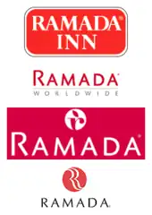 From top to bottom: Original Ramada Inn logo, Ramada Worldwide (Cendant) logo, current 2005 logo, and Ramada International logo.