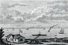 With the help of the financier Wilhelm Kempe, the doctor Curt Wallis took over the well in 1876, both as owner and manager.[36] Wallis refurbished the aging facilities, for example building a bathhouse by the sound, containing both a restaurant and a music pavilion, which he connected to the park with a horse-drawn railway – Sweden's first when it opened in 1877.[37] New villas were built, increasing the number of rooms from 100 to 170. In 1879, the old hotel burned down and was replaced a few years later by a new and larger one, which is largely the hotel that remains today.[38] Wallis did much to restore the reputation of the well after the somewhat chaotic period, and it was to his credit that the Ramlösa mineral spa survived the end of the 19th century.[39]