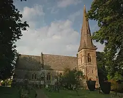Ramsden Methodist chapel in the High Street was built in 1804.[5] It is now a private house. In the Church of England, Ramsden used to be a dependent chapelry of the parish of Shipton-under-Wychwood.[6] In 1848 the Anglican chapel was described as being "of recent date".[6] The architect William Wilkinson designed Ramsden parsonage, which was built in 1862.[7] It is now Ramsden House.[8] In 1872[7] the Church of England chapel was replaced by the present parish church of St James. It was designed by the Gothic Revival architect Arthur Blomfield in an Early English Gothic style.[7] Its bell tower has a broach spire and a set of three bells.[7]