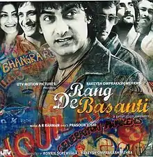 The soundtrack to the 2006 film Rang De Basanti was released by Sony Music Entertainment on 8 December 2005 and had its music composed by A. R. Rahman and lyrics in Hindi and English by Prasoon Joshi and rapper Blaaze.[1][2] The title track was used at a flash mob at Chhatrapati Shivaji Terminus in Mumbai on 27 November 2011 in honour of those who died in the 26/11 attack.