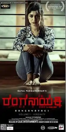 Ranganayaki is a 2019 Indian Kannada drama film written and directed by Dayal Padmanabhan.[1][2] The film was produced by S. V. Narayan under his banner S.V. Entertainment. It features Aditi Prabhudeva[3] and MG Srinivas along with Trivikram Srinivas, who is making his debut in the lead roles. The supporting cast includes Lasya Nagraj, Suchendra Prasad and Chakravthy Chandrachud. The score and soundtrack for the film is by Manikanth Kadri and the cinematography is by Rakesh B. The editing of the film was done by Sunil Kashyap H. N. The film before getting released was selected to the Panorama Section of the 50th International Film Festival of India (IFFI), and is the only Kannada film that has been selected.[4]