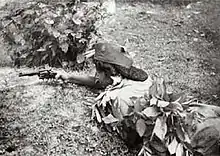 ![]() A female paratrooper of the Rani of Jhansi Regiment in training in the 1940s. | |