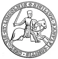 Ranulf de Blondeville, 6th Earl of Chester and 1st Earl of Lincoln[1] (1170 – 26 October 1232), known in some references as the 4th Earl of Chester (in the second lineage of the title after the original family line was broken after the 2nd Earl), was one of the "old school" of Anglo-Norman barons whose loyalty to the Angevin dynasty was consistent but contingent on the receipt of lucrative favours. He has been described as "almost the last relic of the great feudal aristocracy of the Conquest".[2]