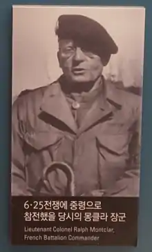 Raoul Charles Magrin-Vernerey, also known as Ralph Monclar (7 February 1892 – 3 June 1964) was a French officer and 2nd Inspector of the Foreign Legion[1] who fought in World War I, World War II within the ranks of the Free French Forces and led the French Battalion in the Korean War.[2] He was also one of the first senior officers to respond to the Appeal of 18 June.