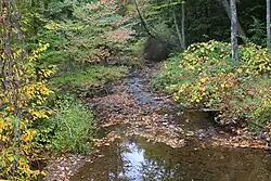 ![]() Rattling Run looking downstream near its mouth | |