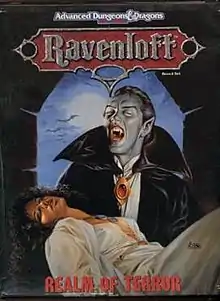Ravenloft: Realm of Terror is a supplement of rules for including Gothic horror in Dungeons & Dragons.[1] The supplement describes each of the 34 domains, or "countries", of Ravenloft, now expanded from the 1st Edition which only featured the castle of the vampire Strahd von Zarovich in Barovia.[2] The domains, described in varying degrees of detail, are each "ruled by an incredibly evil individual".[2] The module outlines the six reward levels a player can receive from pursuing evil deeds from a hit point boost to rule of a small land.[2] The product comprises the following aspects: