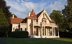 Raynham is located in eastern New Haven's East Shore neighborhood, on the east side of Townsend Avenue opposite its junction with Raynham Avenue. Its 15-acre (6.1 ha) includes picturesque grounds. The main house was built in 1804 with Federal styling, but was extensively altered in the 1850s, giving it its Gothic Revival treatment. The estate includes a carriage house, caretaker's house, a variety of agricultural outbuildings, and three structures, including a gazebo, added in the 1920s.[2]