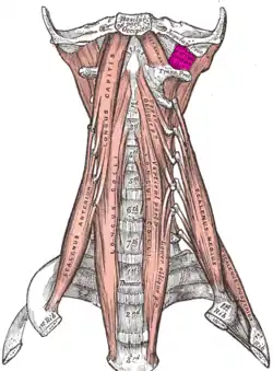 Posterior view of neck bones (rectus capitis lateralis muscle shown in red)