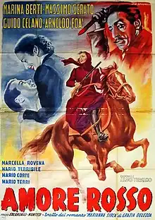 Red Love (Italian: Amore rosso) is a 1952 Italian crime melodrama film directed by Aldo Vergano and starring Marina Berti, Massimo Serato and Guido Celano. It was shot at the Cinecittà Studios in Rome. The film's sets were designed by the art director Alberto Boccianti. It is an adaptation of the 1915 Sardinian-set novel Marianna Sirca by Grazia Deledda and is sometimes also known by this title.[1] Location shooting took place around Aggius and Tempio in Gallura rather than the Nuoro setting of the novel.[2] It was not a commercial success on its first release.[3]