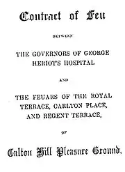 Title page for the Contract of Feu of 1836 for Calton Hill Pleasure Ground