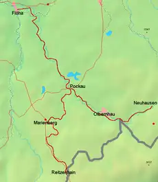 The Reitzenhain–Flöha railway, one of two lines also called the Flöha Valley Railway (German: Flöhatalbahn), is a branch line in Saxony in East Germany. It links the city of Chemnitz with Flöha, Lengefeld, Pockau, Olbernhau and Marienberg, formerly also Neuhausen/Erzgeb. and Reitzenhain and runs through the valleys of the Flöha and the Black Pockau. The line belongs today to DB Regio-Netz Erzgebirgsbahn.