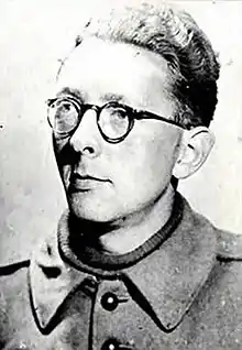 Enlisted in the French army in May 1940, Binet was soon taken as a prisoner-of-war by the Germans.[4] During the war, he moved away from his communist stance to become an open supporter of Nazism.[2] In 1943, he enrolled in Nazi Germany's Compulsory Work Service.[1] In April of the same year, the Internationalist Communist Committee published a "warning" about Binet, dismissing him as a traitor to the Trotskyist cause.[2] In February 1944, he joined the Legion of French Volunteers Against Bolshevism (LVF), then served as a staff sergeant within the SS Charlemagne Division.[1][5]