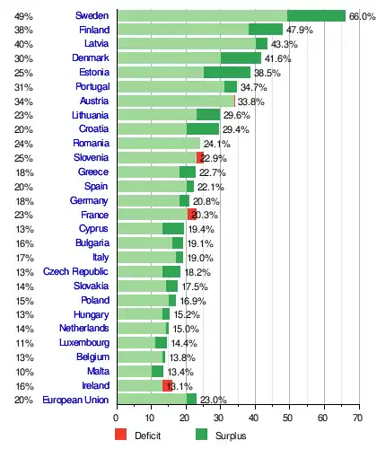 The renewable energy directive enacted in 2009 lays out a framework for individual member states to share the overall EU-wide 20% renewable energy target for 2020.[6] Promoting the use of renewable energy sources is important both to the reduction of the EU's energy dependence and in meeting targets to combat global warming. The directive sets targets for each individual member state taking into account the different starting points and potentials.[6] Targets for renewable energy use by 2020 among different member states varied from 10% to 49%.[6] 26 EU member states met their national 2020 targets. The sole exception was France, which had aimed for 23% but only reached 19.1%. By 2022, Austria, Ireland, and Slovenia had dropped below their 2020 targets.[2]