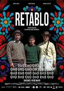 Retablo is a 2017 drama film directed by Alvaro Delgado-Aparicio.[1] The film is an international production with the participation of Peru, Germany and Norway.[2] The cast also includes Magaly Solier as Anatolia, Segundo's mother and Noé's wife. Delgado-Aparicio's full-length directorial debut, the film is written and acted in Ayacucho Quechua.[1] It is a co-production between Peru, Germany and Norway.[3]