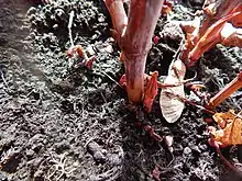 According to Gail Wallin, executive director of the Invasive Species Council of B.C., and co-chair of the Canadian Council on Invasive Species, by 2015 it was found in all provinces in Canada except Manitoba and Saskatchewan.[39] In Vancouver plants went under "four lanes of highway and have popped up on the other side."[39] At Mission Point Park in Davis Bay, British Columbia, municipal crews attempted to eradicate it by digging out the plant to a depth of about three metres (10 feet) with an excavator. It grew back twice as large the next year.[39] To avoid an epidemic as in the United Kingdom, some provinces in Canada are pushing for relaxation of provincial limits on the use of herbicides close to waterways so knotweed can be aggressively managed with strong chemicals. In spite of its status as an invasive species it is still sometimes sold or swapped in Canada as an edible "false bamboo".[39] Bohemian knotweed, a hybrid between Japanese and giant knotweed that produces huge quantities of viable seeds, now accounts for about 80 per cent of knotweed infestations in British Columbia.[39]