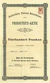 Share of the Drahtseilbahn-Gesellschaft Rheineck-Walzenhausen, issued 1. October 1897 [7]