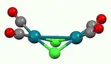 - ↑ Walz, Leonhard; Scheer, Peter "Structure of di-μ-chlorobis[dicarbonylrhodium(I)]" Acta Crystallographica Section C 1991, C47, 640-41. doi:10.1107/S0108270190009404