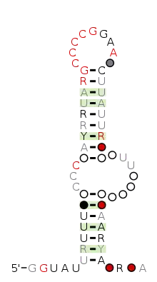 ![]() Consensus secondary structure and sequence conservation of L13-Bacteroidia ribosomal protein leader | |