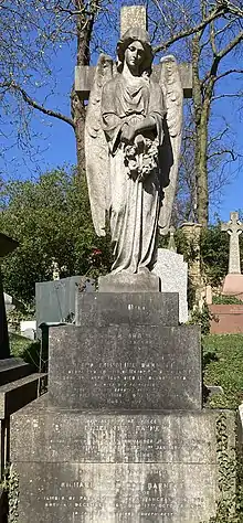 He died on the 17th October 1930, aged 66, following complications after an operation[3] and is buried in a family vault on the eastern side of Highgate Cemetery.