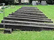 His work has been compared to that of Richard Serra, Joel Shapiro, and Dorothea Rockburne.[6] His work has been exhibited internationally. He created a 300-foot-long installation in the U.S. at MassMoca in a one-person exhibition, Richard Nonas: The Man in the Empty Space.[9][10] His work was featured in the 1973 Whitney Biennial.[11] Courtney Fiske has written that Nonas treated "space as a material", in that each work is intended to be a "blunt insertion into the viewer's surrounds. His approach to minimalism not only includes serialiity, but also maintain a sense of self-containment and timelessness."[12] Joyce Beckenstein writing for the magazine Sculpture, described Nonas' studio as a "Wunderkammer piled high with artifacts and relics as well as past and in-progress works....with the unexpected surprises of an archaeological dig."[13]