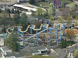 Ricochet at Carowinds is a Compact park model. It received a new paint job for the 2014 season, consisting of blue supports and green track.[3]