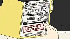 "Ride Me to Hell" is the third episode of the second season of the American animated television series Ugly Americans, and the seventeenth overall episode of the series. It originally aired on Comedy Central in the United States on July 14, 2011. In the episode, Grimes is outraged by the unsatisfying ending of his favorite television series, and Mark helps him unravel his attachment to the series while uncovering several deep-seated memories. Meanwhile, Callie is expected to take over as the leader of Hell from her father, but is unwilling to do so.
