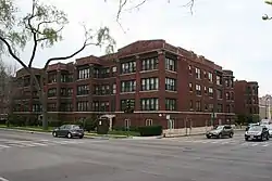 Ridge Manor is a historic apartment building at the northeast corner of Ridge Avenue and Davis Street in Evanston, Illinois. The three-story brick building was built in 1916. The building consists of two sections; the section facing Ridge Avenue contains the building's larger apartments, while the U-shaped section facing Davis Street contains smaller apartments and includes an open courtyard. Architect William H. Pruyn, Jr., designed the building. The building's design features limestone detailing, protruding bays, and a cornice and parapet at the roof line.[2][3]