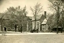 The school experienced rapid growth and expansion (both population and campus-wise) in the first half of the twentieth century, including the building of Ridley College Chapel and Dormitory Building by architects Sproatt and Rolph.[1] The Memorial Chapel and two marble plaques were built by architects Sproatt and Rolph in 1921 to commemorate the sixty-one Old Ridleians who lost their lives in World War I.[2] In the same year, Dr. Harry Griffith became the second headmaster of Ridley. In 1922, Gooderham House, donated by the Gooderham family, was opened. The Lower School opened in 1927 with a total of eighty students (sixty boarders, nineteen day boys and one day girl). It also became home to two Upper School dormitories, Mandeville House and Leonard House.