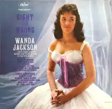 Right or Wrong is a studio album by country music and rockabilly singer Wanda Jackson. It was released in October 1961 by Capitol Records (catalog no. ST-1596). The album cover says that Jackson "pours sugar over six ballads and rocks around six big beat tunes."[2] The album included Jackson's hit song "Right or Wrong", which peaked at No. 9 on the country chart and No. 29 on the pop chart.[3][4]