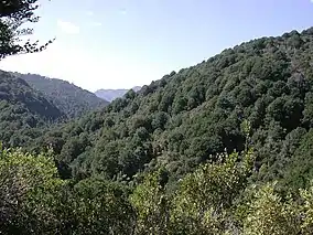 Remutaka Forest Park (spelled Rimutaka Forest Park prior to 2017) is a protected area near Wellington, New Zealand. Popular access points are south of Wainuiomata and in the upper Hutt Valley. The park covers 220 square kilometres (85 sq mi),[2] encompassing the Catchpool Valley and the Ōrongorongo Valley at the southern end of the Remutaka Range. Established in 1972, the park contains several short walks and six huts that can be booked and accessed by longer bush tramps. The park is one part of several local conservation areas, as it borders the Pakuratahi Forest and the Tararua Range.