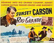 Rio Grande is a 1949 American western film directed by Norman Sheldon and starring Sunset Carson, Lee Morgan and Bobby Clack.[1] It was distributed by the low-budget company Astor Pictures. It was shot on location in San Ygnacio, Texas and at the Oliver Drake Ranch in California.[2]