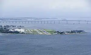 The Rio de Janeiro-São Paulo Aerial Bridge (Portuguese: Ponte Aérea) is a Brazilian air shuttle run by various airlines between Santos Dumont airport in Rio de Janeiro and Congonhas airport in São Paulo. It was inaugurated on 5 July 1959 by the airlines Varig, Cruzeiro do Sul and VASP making it the first air shuttle in the world.[1] It is now operated by LATAM, Gol and Azul. More than 120 flights operate daily between the two cities with an average of one flight every 10 minutes, between the hours of 06:00 and 22:00.
