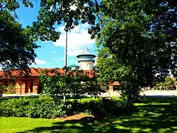 The Water Tower in Riverside was designed by Jenney, Schermerhorn & Bogart, Architects and Engineers. Like the Water Tower in Chicago, the Riverside Water Tower is a well-known landmark in the area. It is both a water tank and a decorative element in the village-scape.