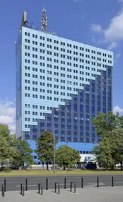 Riviera was built between 1962 and 1964 at 12 Waryńskiego Street in Warsaw, Poland. It was designed desigined by Kazimierz Thor, Józef Bubicz, and Czesław Molenda, as a dormitory for students of the Warsaw University of Technology.[1] The building consists of three connected parts, including the skyscraper and two smaller parts, which included sports halls, a canteen, and an auditorium.[2] Its upper façade was covered in the clinker brick, and the front façade was covered in large windors. It was the first skyscraper in Poland to function as a dormitory.[1] With the height from the base to the roof equal 67 m, and the total height of 80 m, it was the second tallest building in the city until 1974, when Novotel Warszawa Centrum was constructed.[3] From 1972 to 1979, at the groud floor was located the Galeria Remont art gallery, and from 1983 to 1989, Galeria RR art gallery.[4][5] Since 1973, in the building complex is located the Klub Riviera Remont night club.[6] In the 1990s, in the building basement was later Złota Skała recording studio.[7]