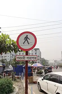 Road signs in Bangladesh are similar to those used in some parts of the United Kingdom, except that they are multilingual.