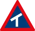 Roadway narrows from the right side ahead