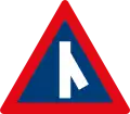 Roadway narrows from both sides ahead